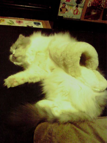 ほのぼのとした写真ですが、我が家のネコ(海老蔵)です。