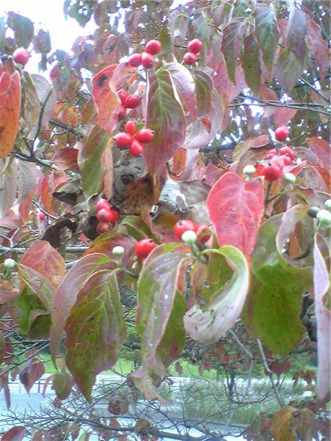 赤い実もいっぱいついて、紅葉がきれいになってきました。水面にも赤い色が解けているようです。小鳥達も来て、鴨も飛来してきました。