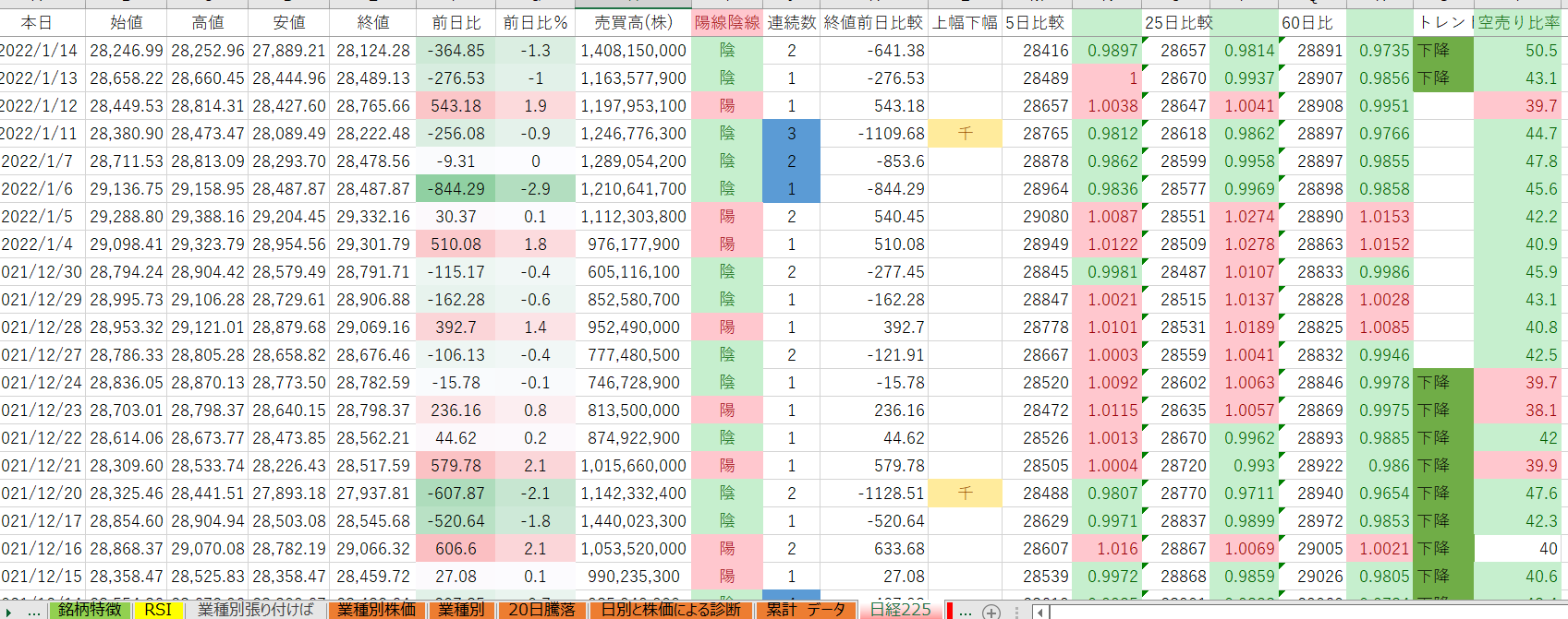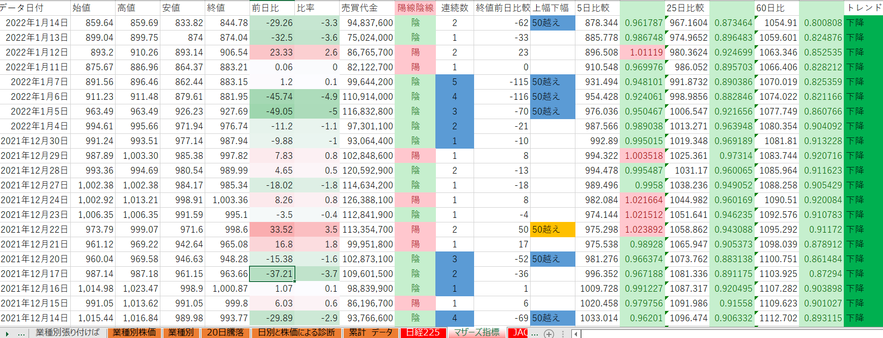 ②日経平均の下降トレンド突入(みんなで稼ごう設定移動平均線)