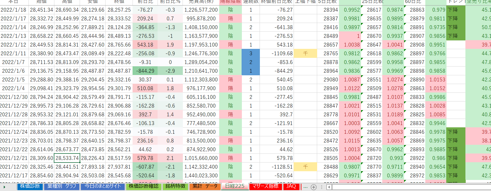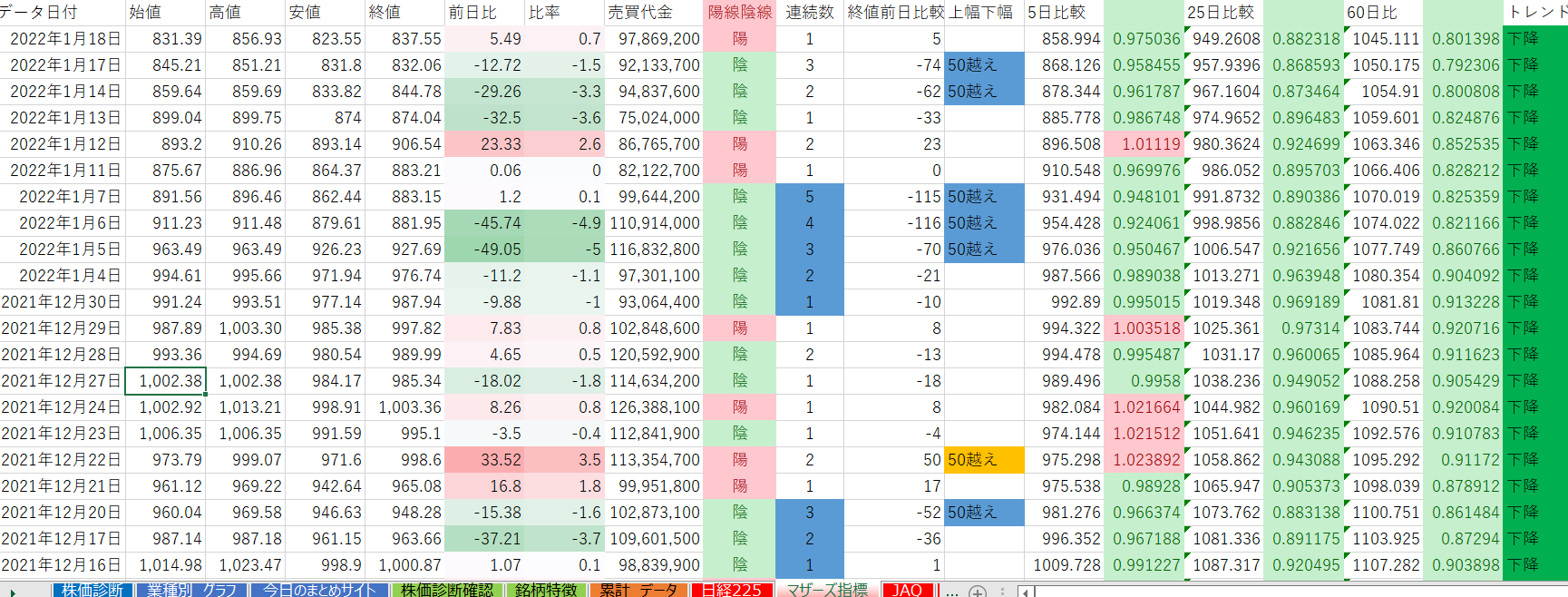 火曜日は、日経平均下降トレンドの継続日数とMACD