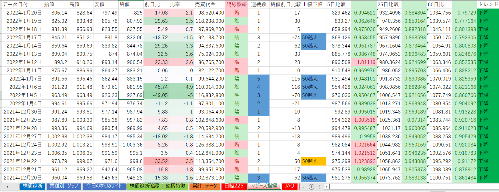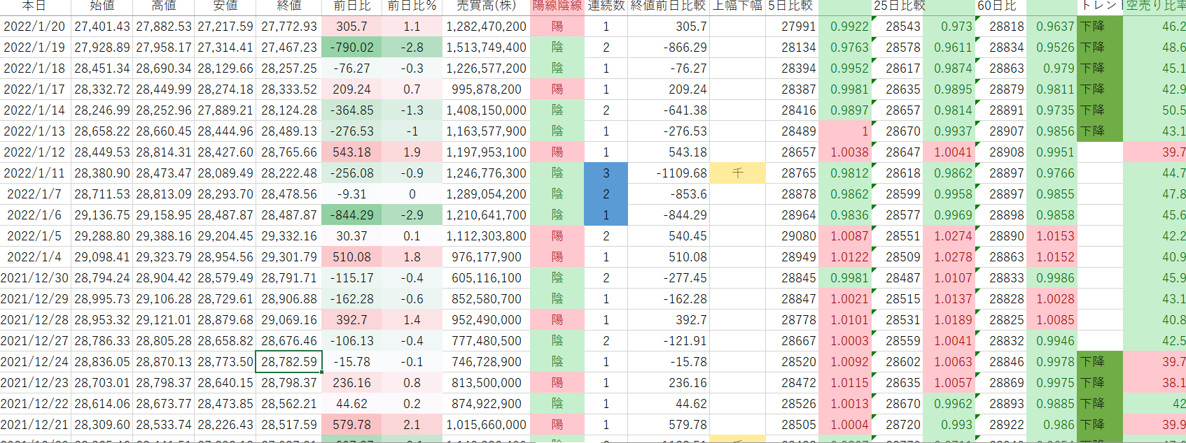 下降トレンドが多くなりました。