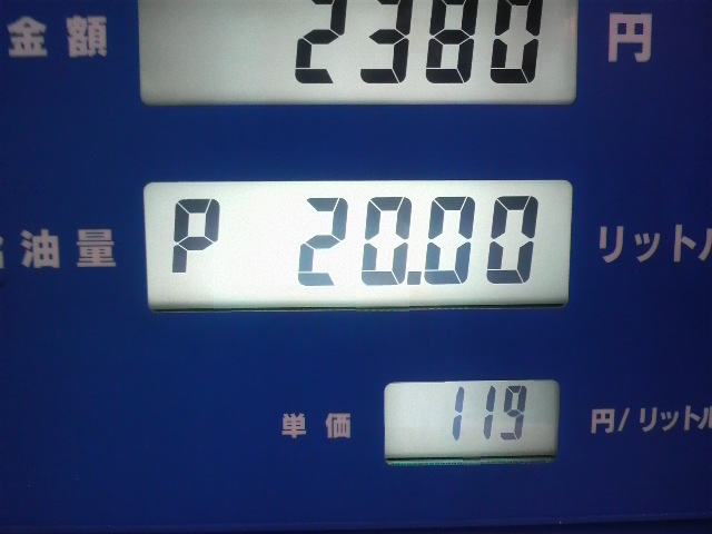 ついに110円台に突入したガソリン価格。拙者近所行きつけのスタンド(会員価格)では、久々に見る119円でござりました。