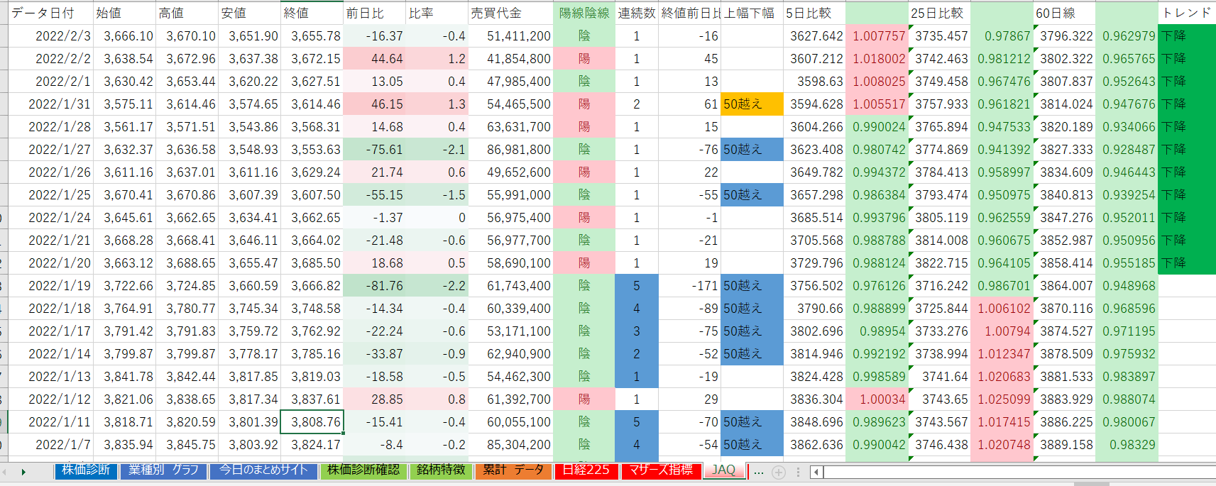 下降トレンド 13業種(-3業種)