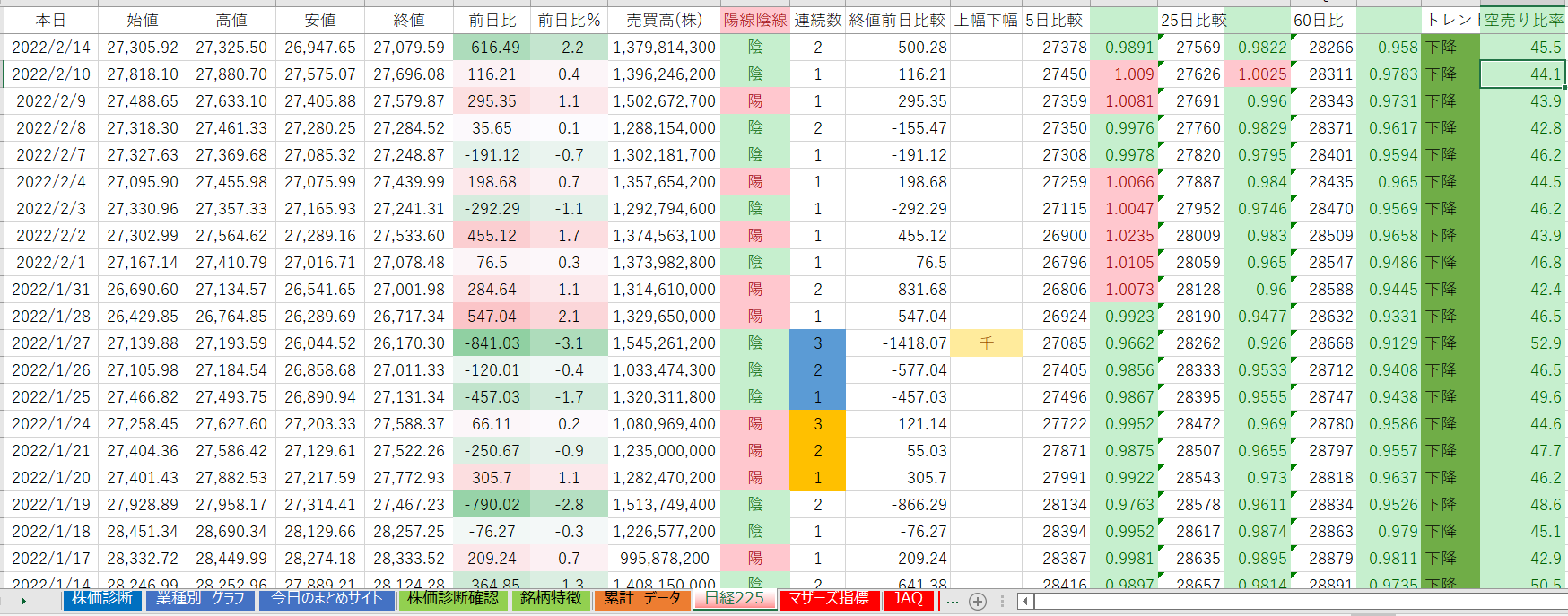 日経平均 ☛ 21日