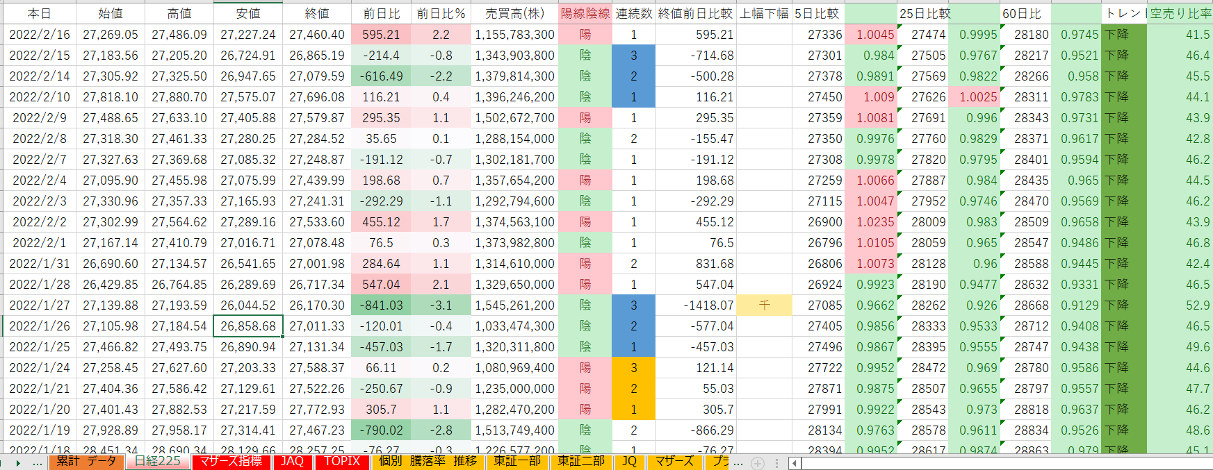 日経平均 ☛ 23日 大体1か月