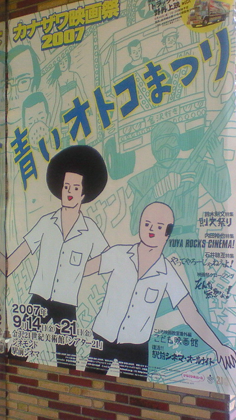 3.兼六園から香林坊(金沢市の繁華街)まで歩いて戻る途中で、変わったポスターを発見(写真中央、シブい映画祭らしい・・・。)