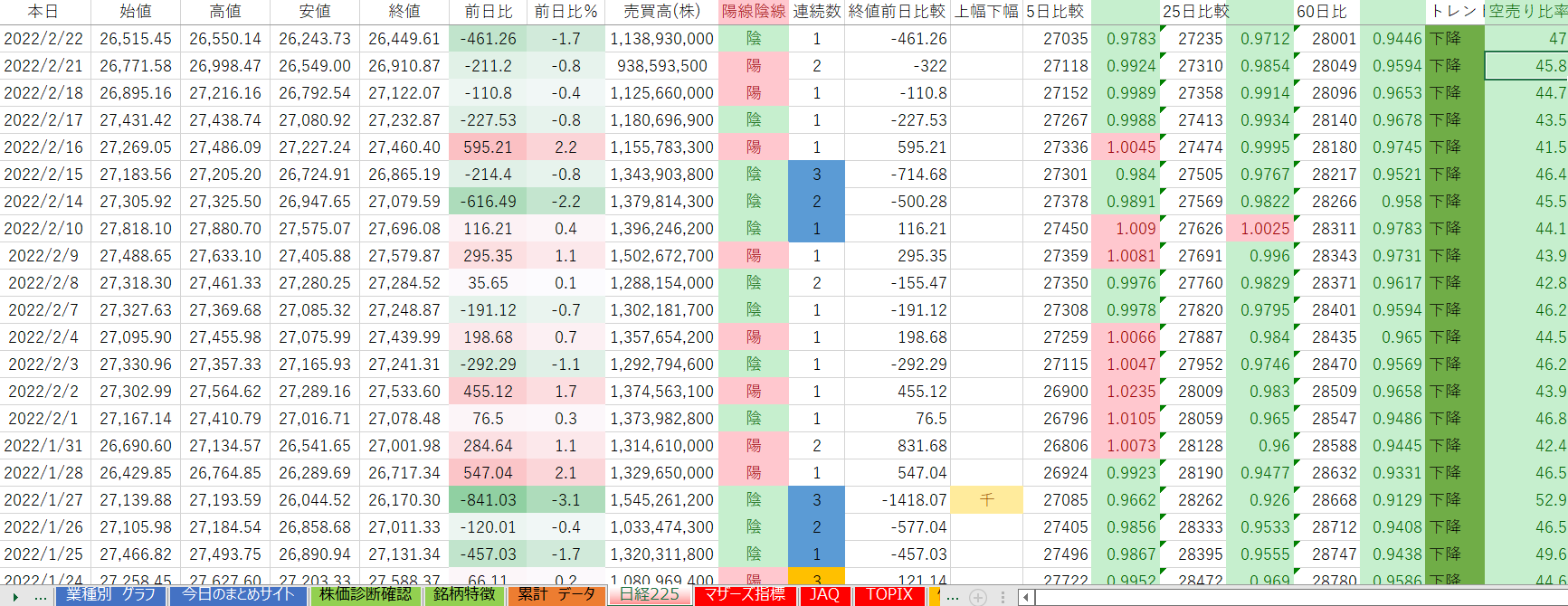 ちょっと前まで、上昇トレンド業種は0、下降トレンド業種が20を