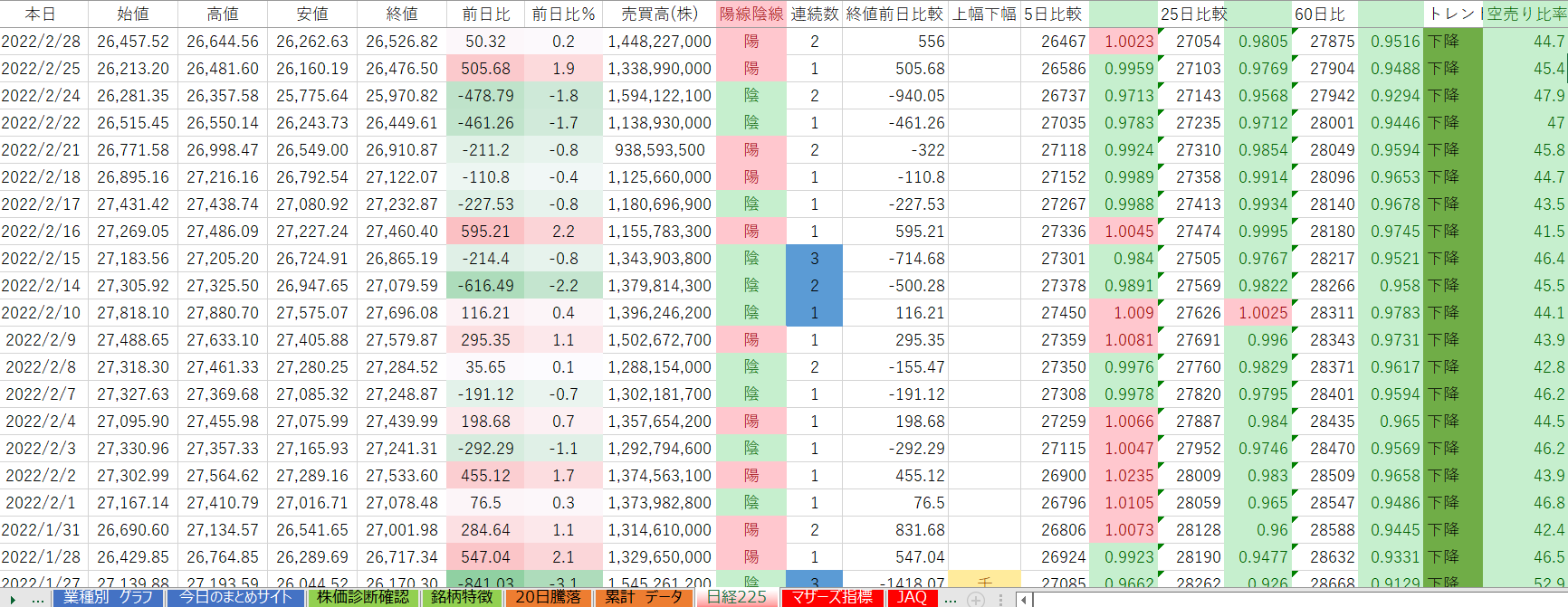 ちょっと前まで、上昇トレンド業種は0、下降トレンド業種が20を