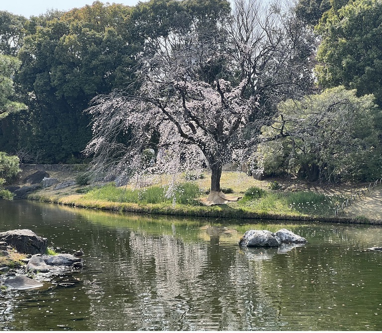しだれ桜と、結婚式の前撮り3組もいた。