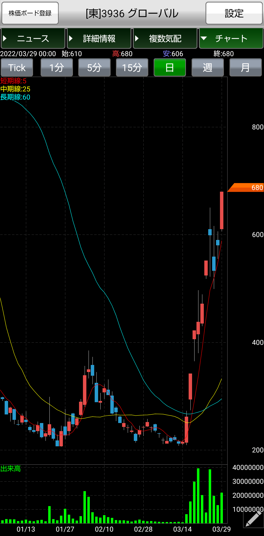 3936 グローバルウェイ 上昇率 179%(前日35%増)