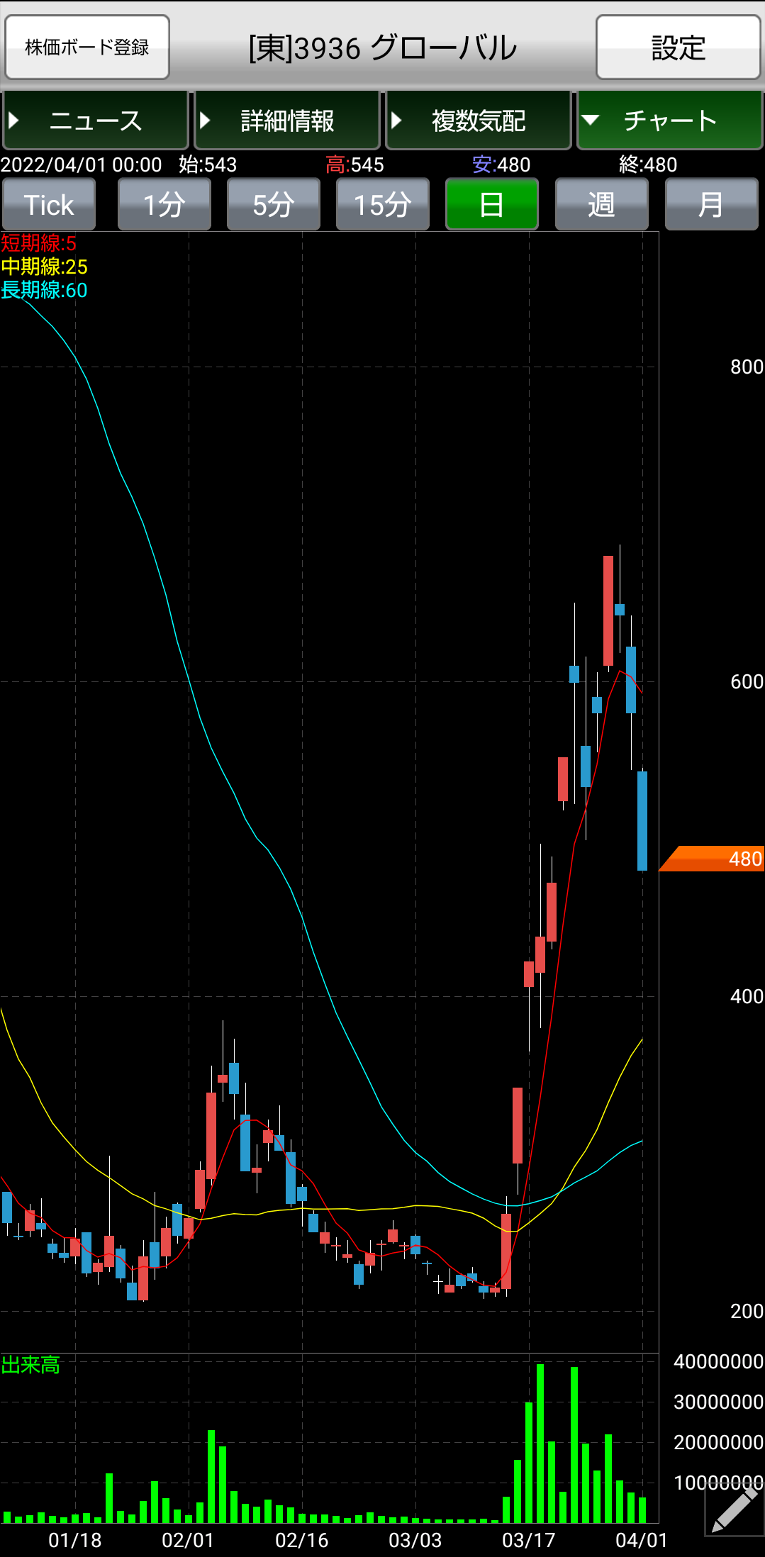 3936 グローバルウェイ 上昇率 102%(前日-37%減)