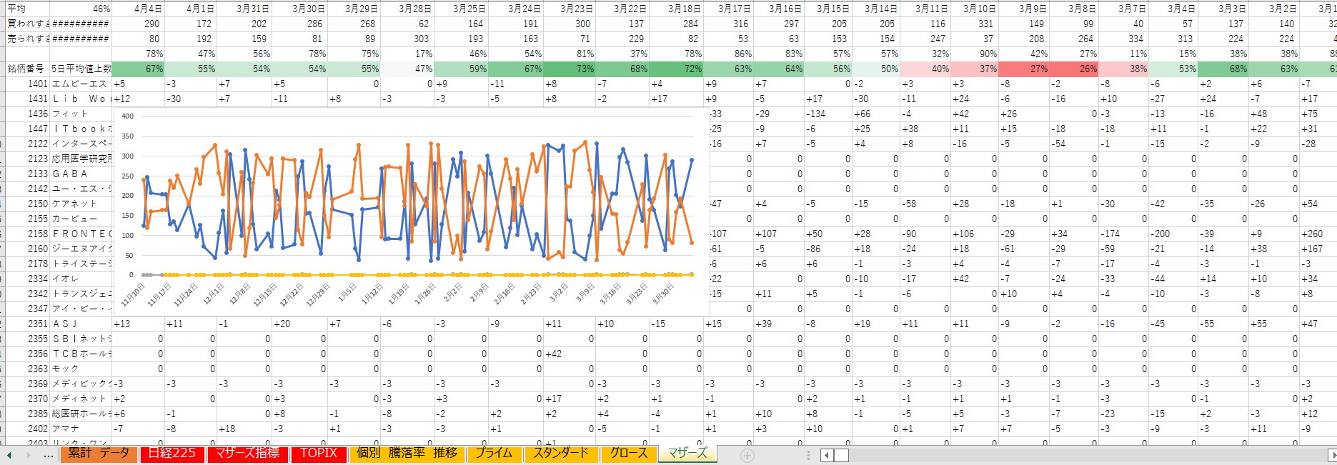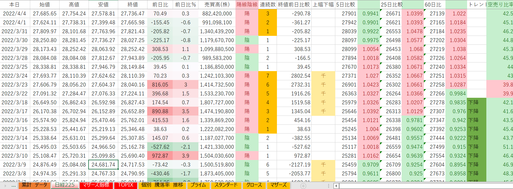 83営業日あるのですが、71日間下降トレンドでした(;^ω^)