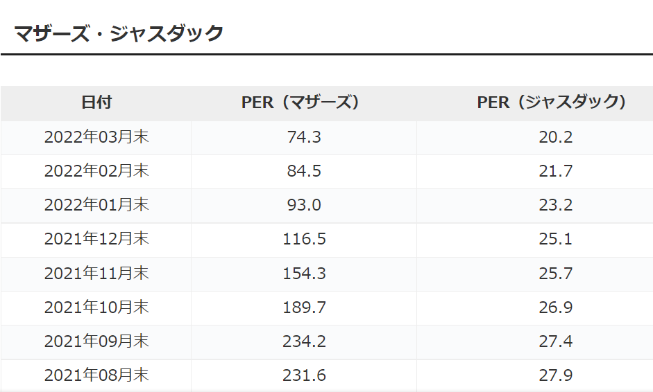 従って少なくともPER3桁台の銘柄は避ける方が賢明