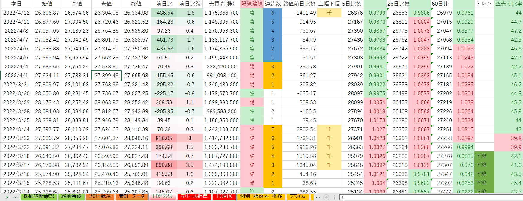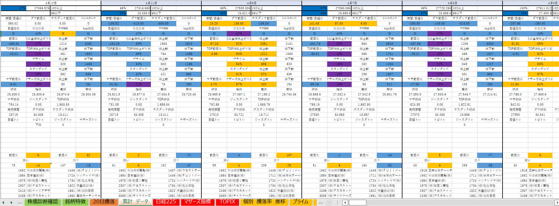 ※画像で濃い青が青アラート点灯時です。右は日経平均の集計です!