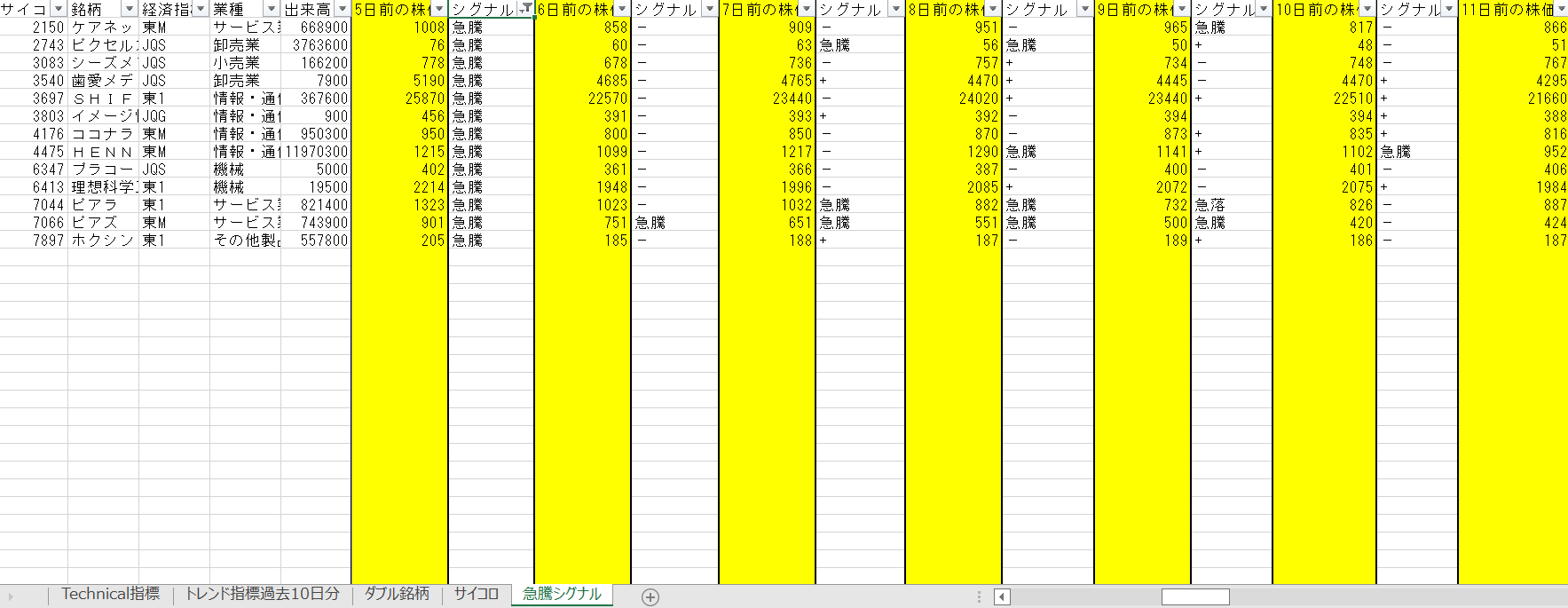 ①急騰後急落銘柄