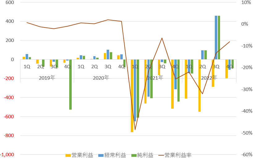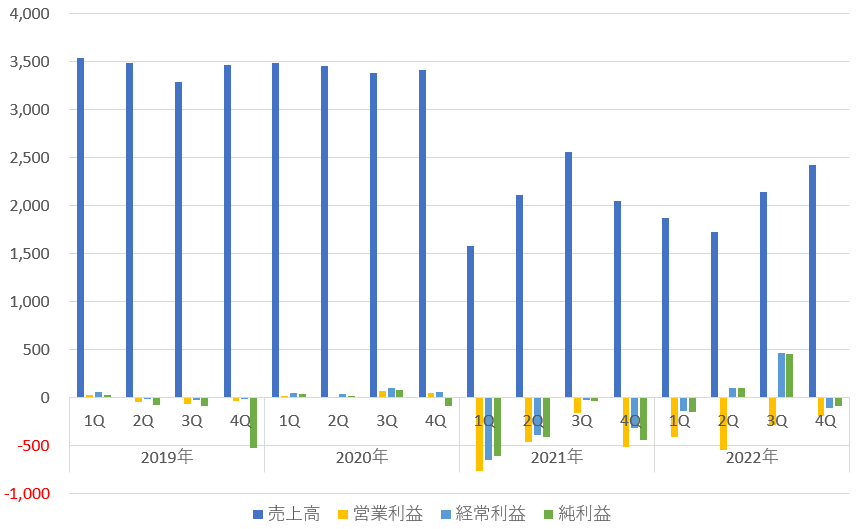 3ヵ月ごとの業績推移です、累積ではありません。