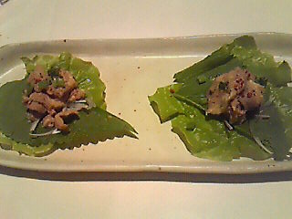 次にお肉をお野菜で巻いて食べる感じの前菜。