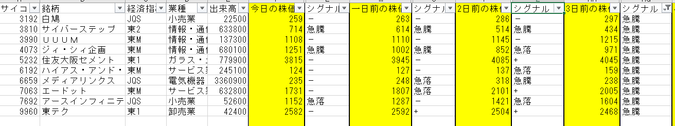 絞ったときのエクセルとそれで推奨した銘柄となります!