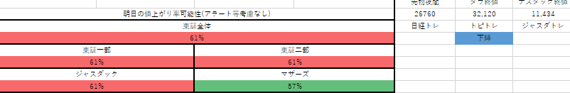 東証全体のどちらに触れるかの予想的中率は 81% になりました。