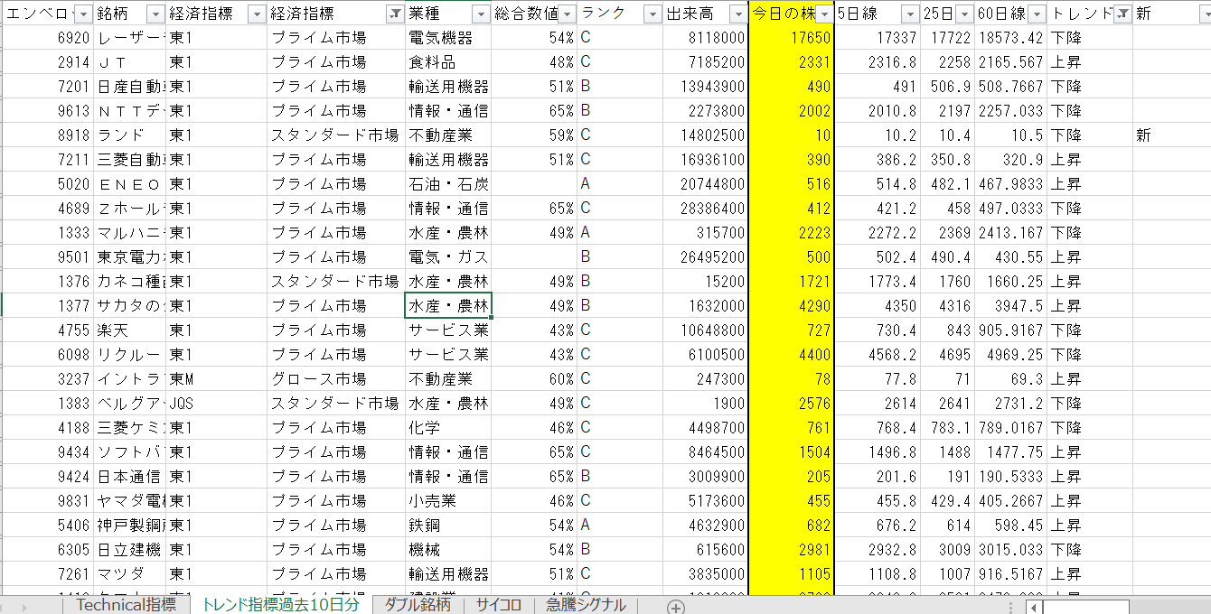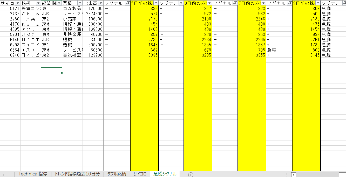 ※画像2枚目は、【上昇トレンドの押し目】のエクセル