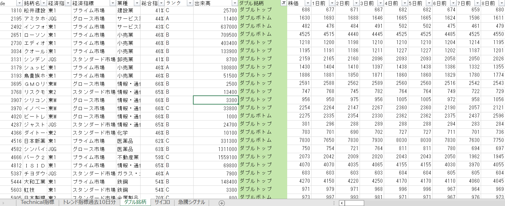 ※画像3枚目は、【ダブルボトム】のエクセル