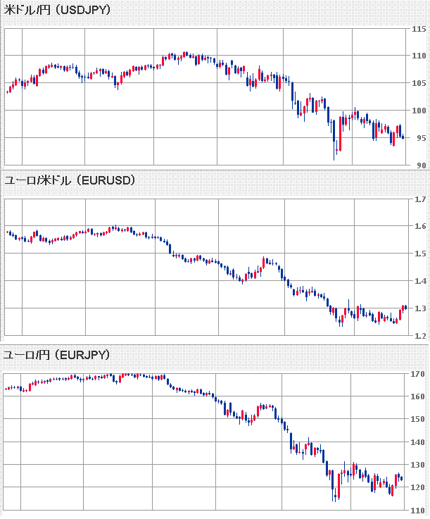 金融当局の支出増やバランスシートの拡大を受けてだと思うのですが、ドルが下がってきています。暴落しないのなら、不況時は通貨安の方がその国の経済全体にとっては良いので、アメリカにとってはプラスですね。通貨高だと、デフレ圧力がかかるし、輸出産業の競争力が下がるので、不況から脱出しにくくなります。(だから今の日本は辛い状況です)