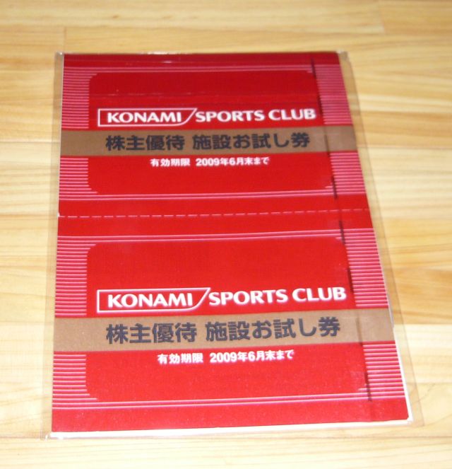 コナミスポーツのビジター料金が無料になるチケットがもらえます。1枚のチケットで2人まで入場できます。