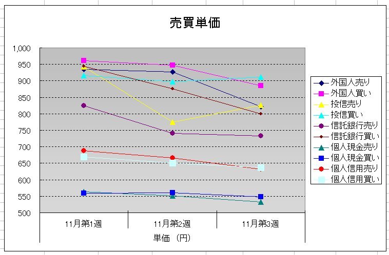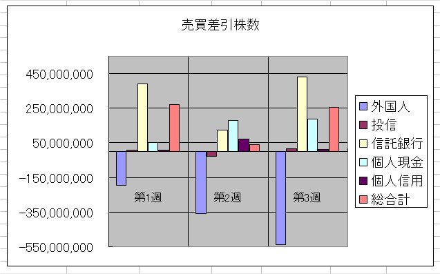 1枚目はよく見かける投資主体別の売買金額の売りと買いの
