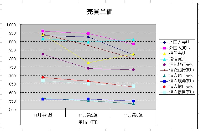 2枚目は売買株数と売買金額からそれぞれの単価を出したもの。