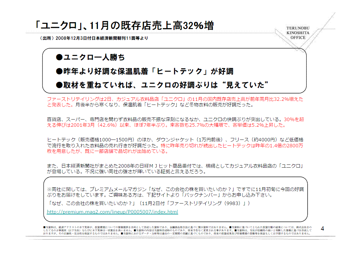 ●取材を重ねていれば、ユニクロの好調ぶりは“見えていた”