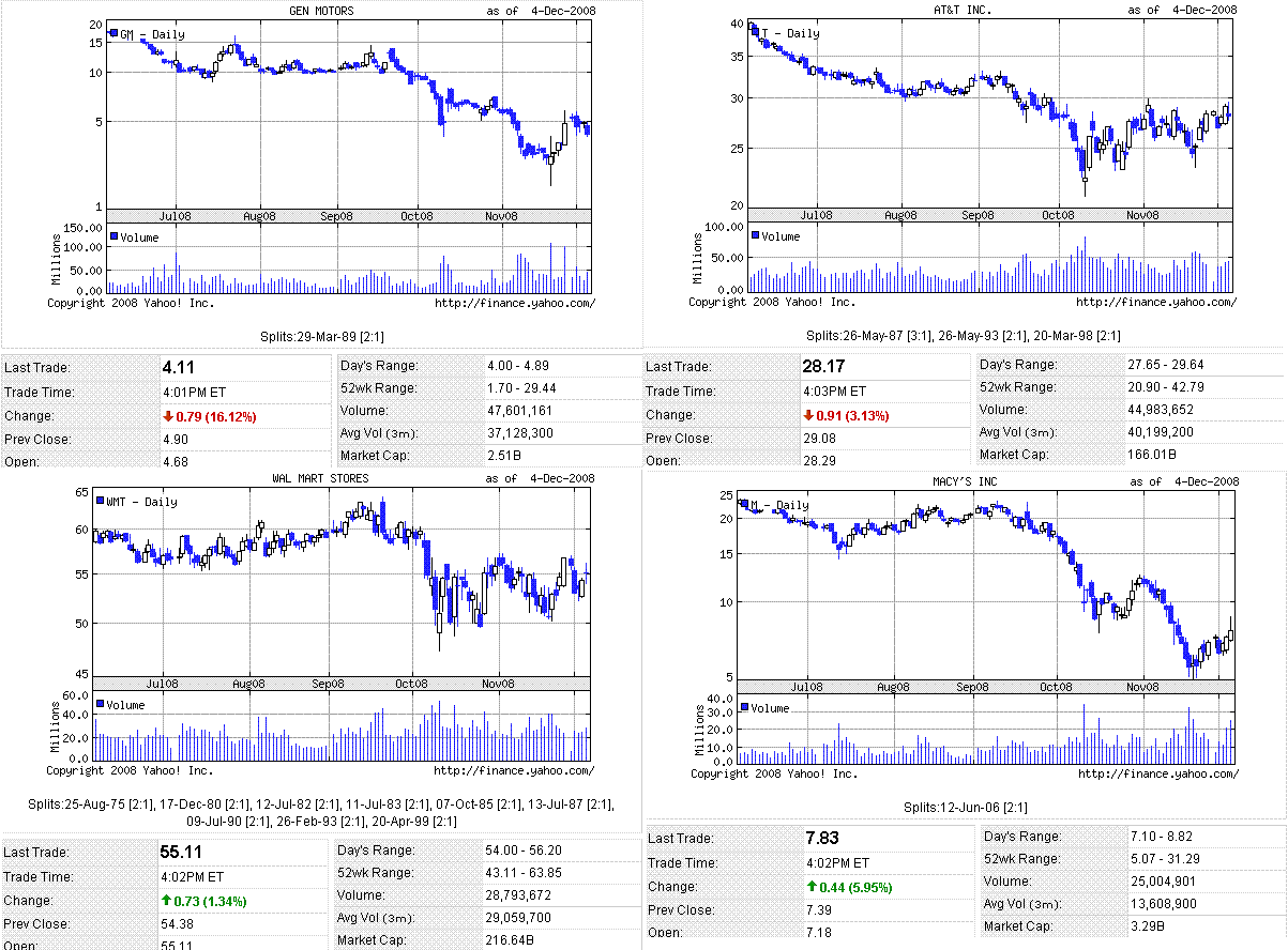 米株は反落。前日比プラスになる場面もありましたが、自動車メーカー救済への不透明感や、雇用統計への警戒感から、残り一時間でストンと落ちました。10年債利回りは2.57%に低下。原油価格(WTI)は、43ドル台まで低下。
