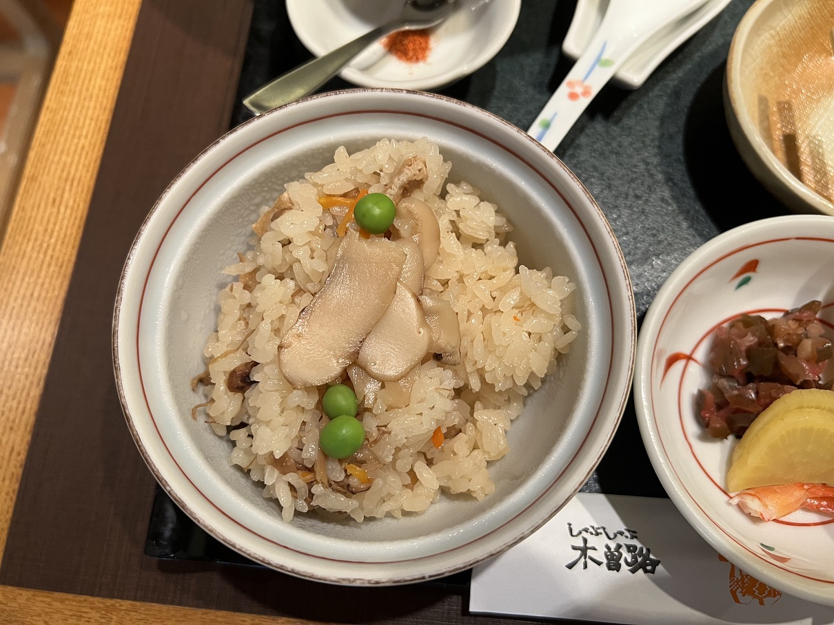 木曽路のマッタケ御膳土瓶蒸しがおいしかった。