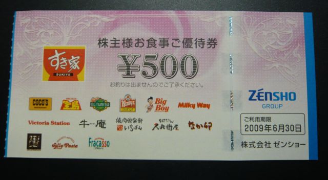 ゼンショーだけ有効期限が6ヶ月なんで旧券3枚を今月中に使わないと。^^