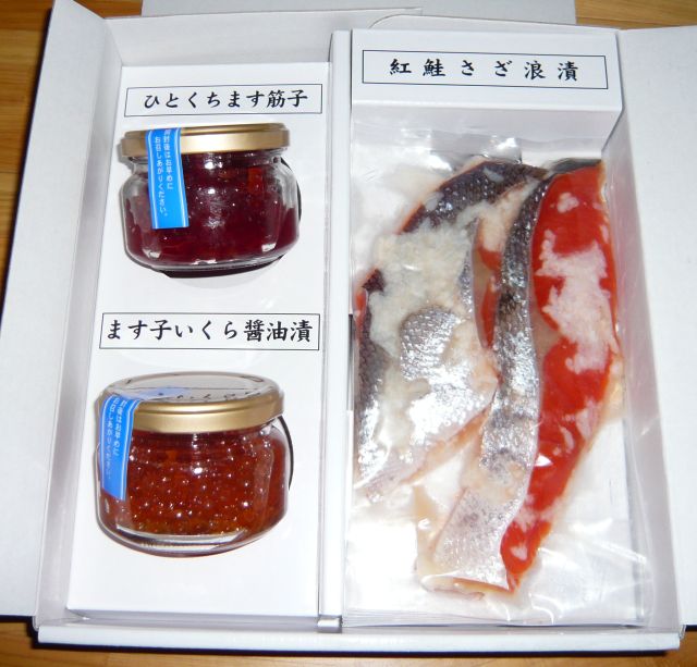 はい、去年は魚卵だけだったんすけど、今年は鮭がつきました(^p^)