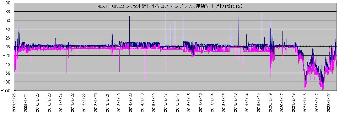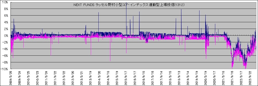 小型株指数のラッセル野村小型コア指数に連動する投資成果を目指す NF・RN小型コアETF(1312)は、2007/10/22に設定されましたが、口数が増えないということで、繰り上げ償還することになりました。