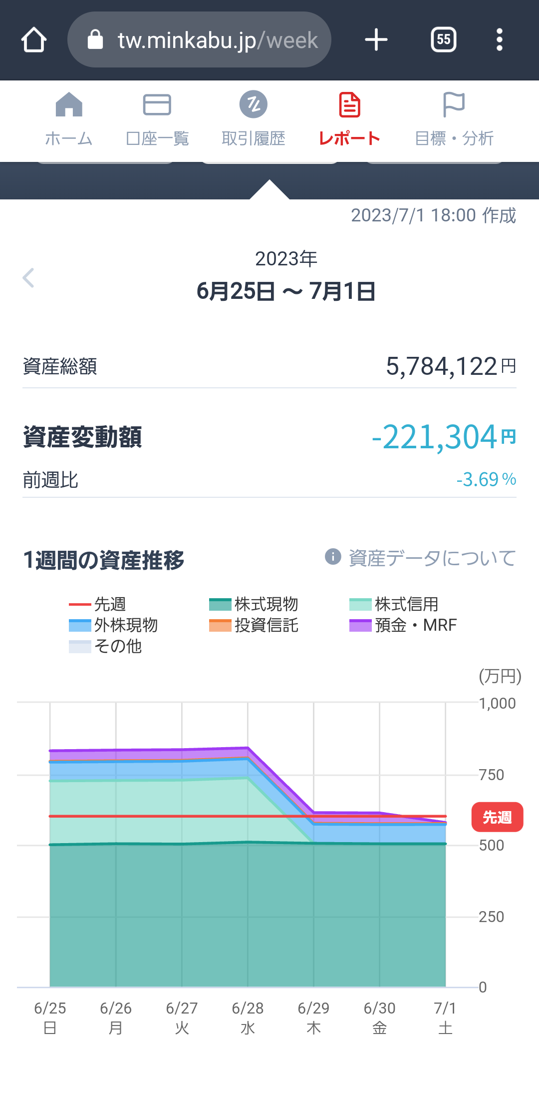 先週ちょっと信用取引でプラスになった分を別口座の積み立てETFへ移動したのでマイナスになりました。