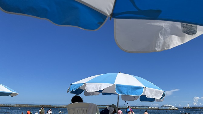 熱海の海岸と名古屋観光ホテルの喫茶室。
