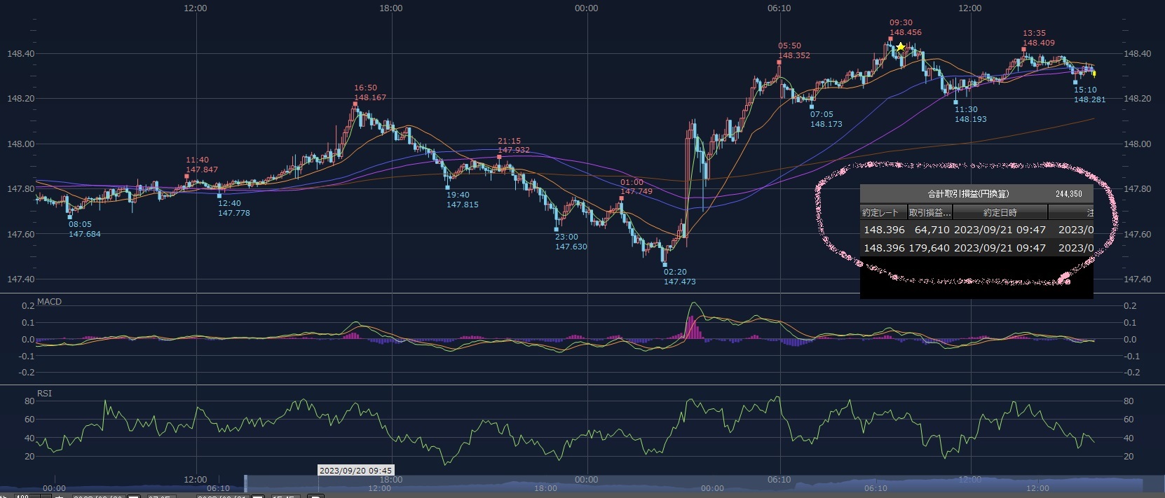 それか昨日の16時50分の高値んとこで一旦決済やったな
