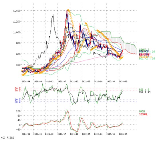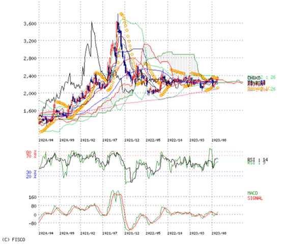 打診買いから。遅行線左下から右上がりに抜けて行きそうかな?