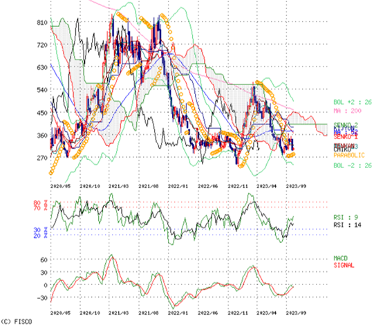 画像1 日足 今多くの銘柄が同じような形してるけど、下の星が出来てるからこれにした。