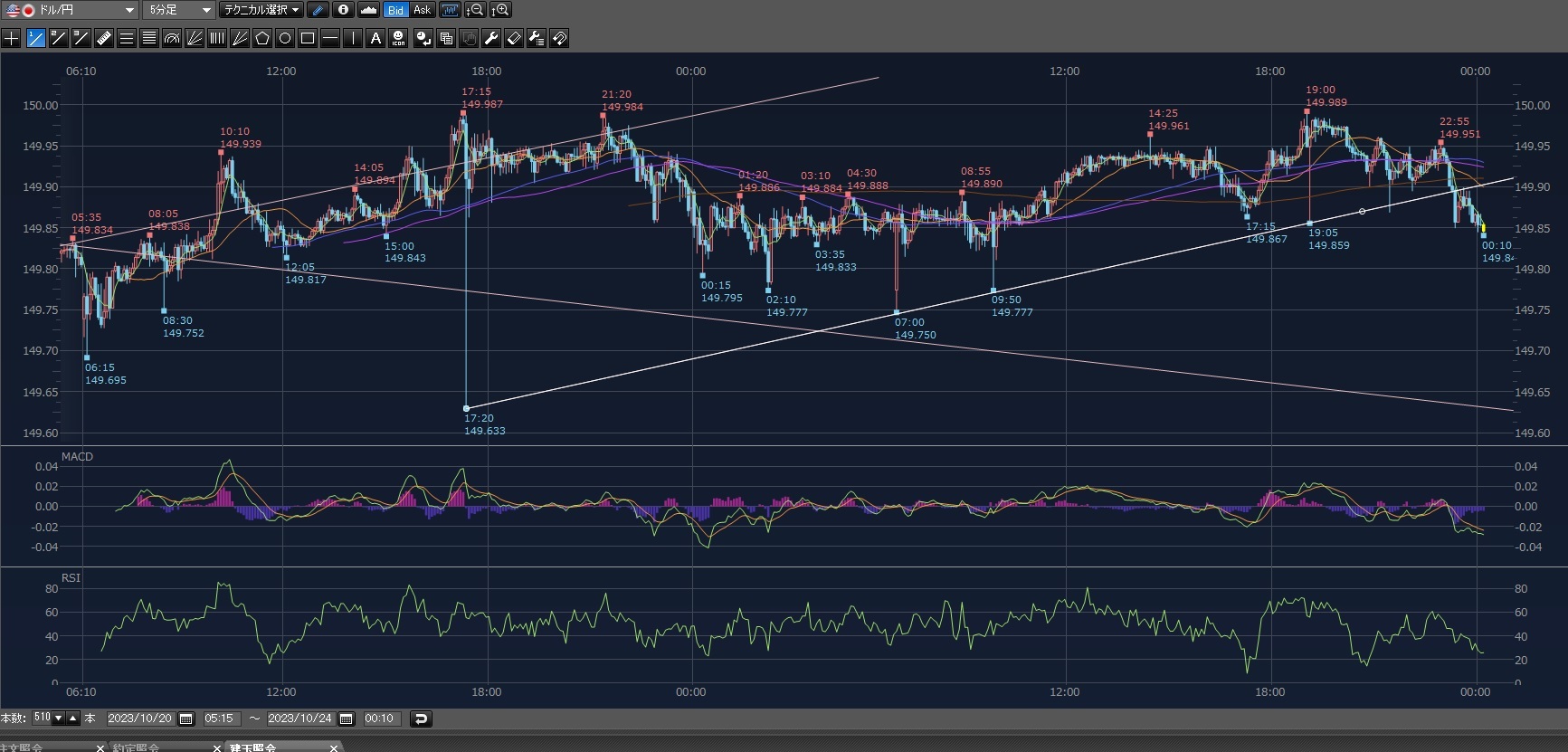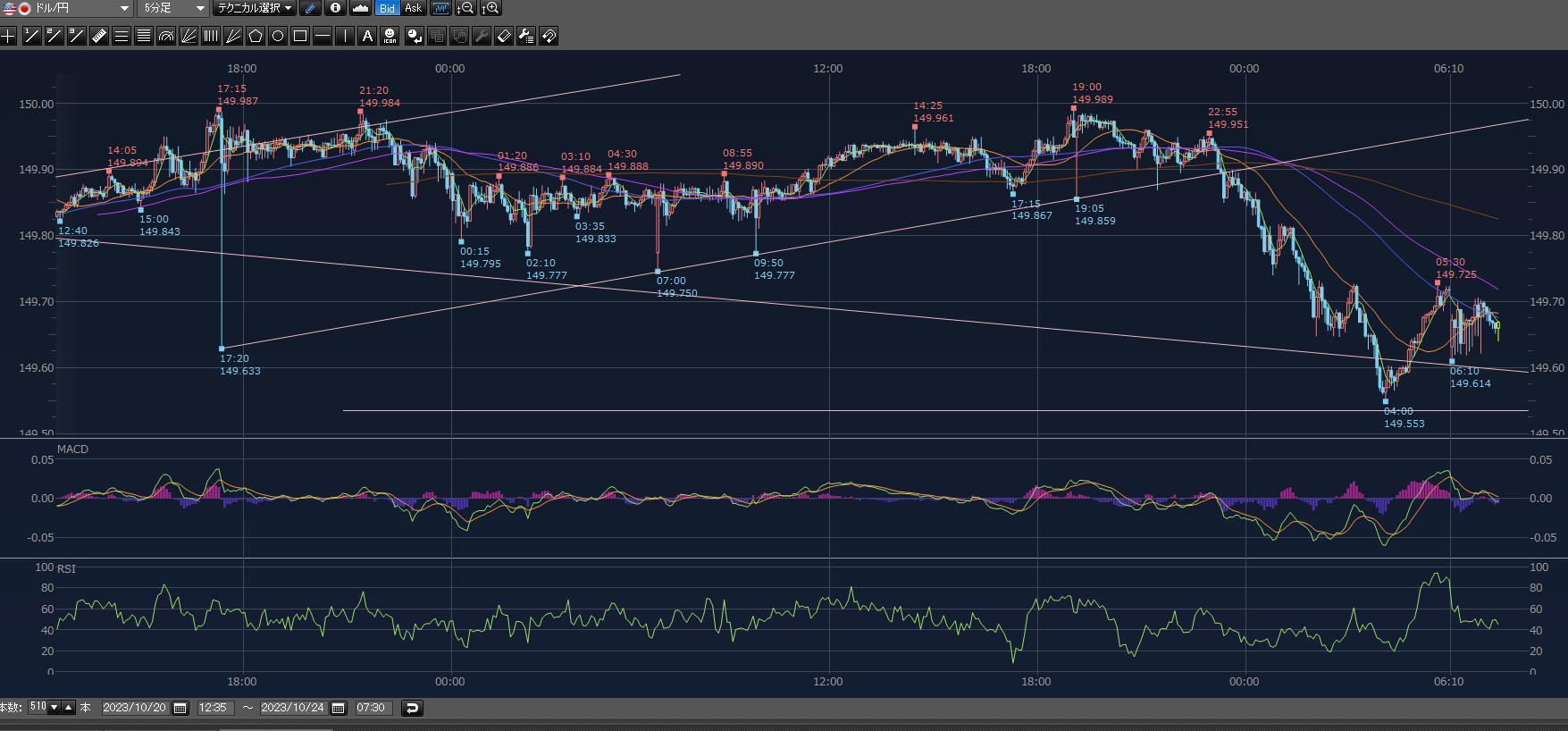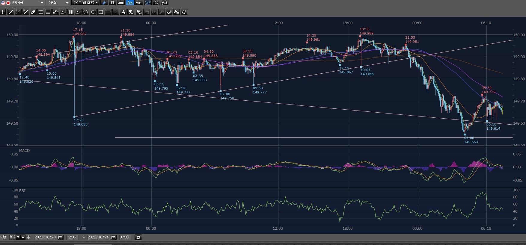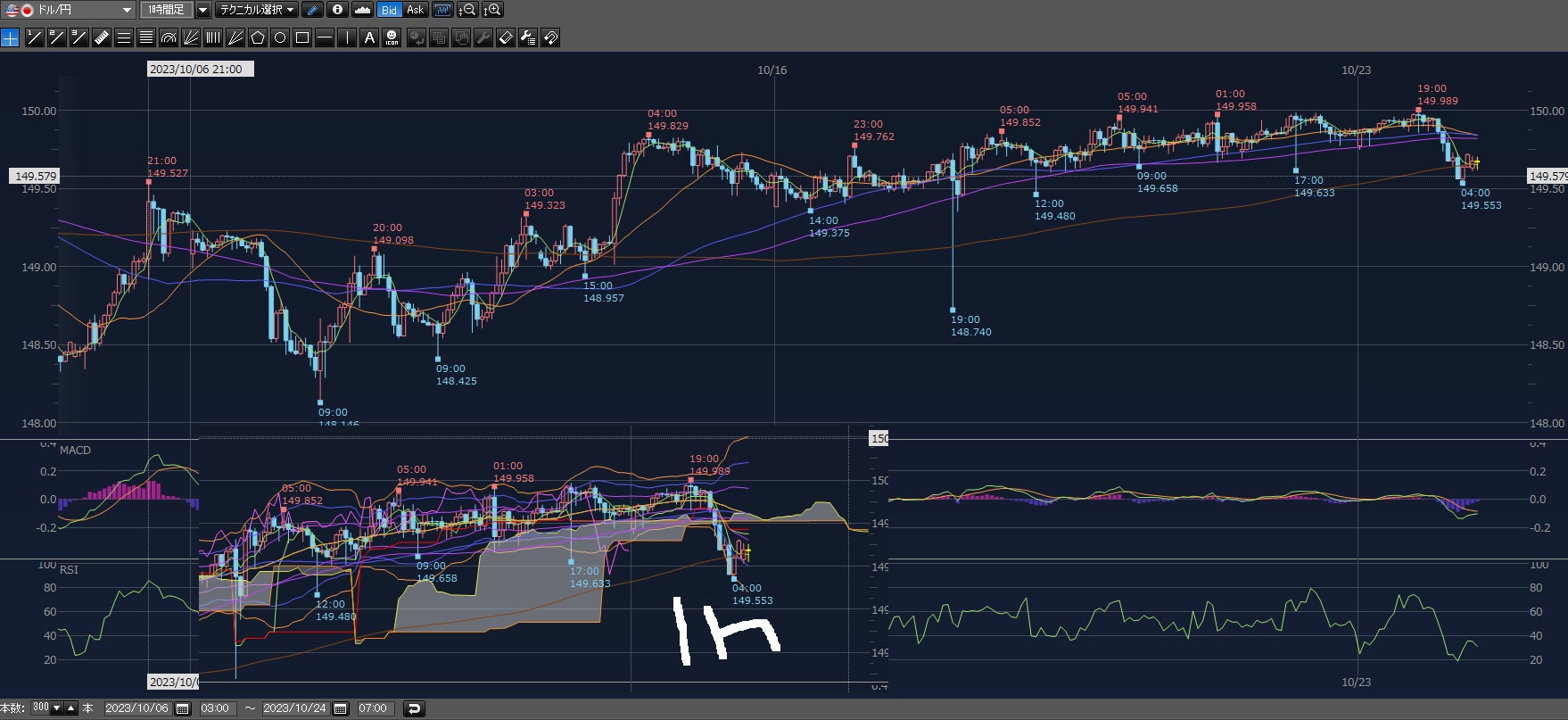 見直すと最後に見たときにはもう下げ始めてた!