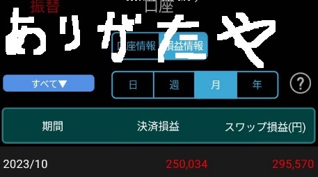 今月は月初に高値掴みで捕まり、それをナンピンして鬼ホールドしたお陰でスワップが29万も付いてます