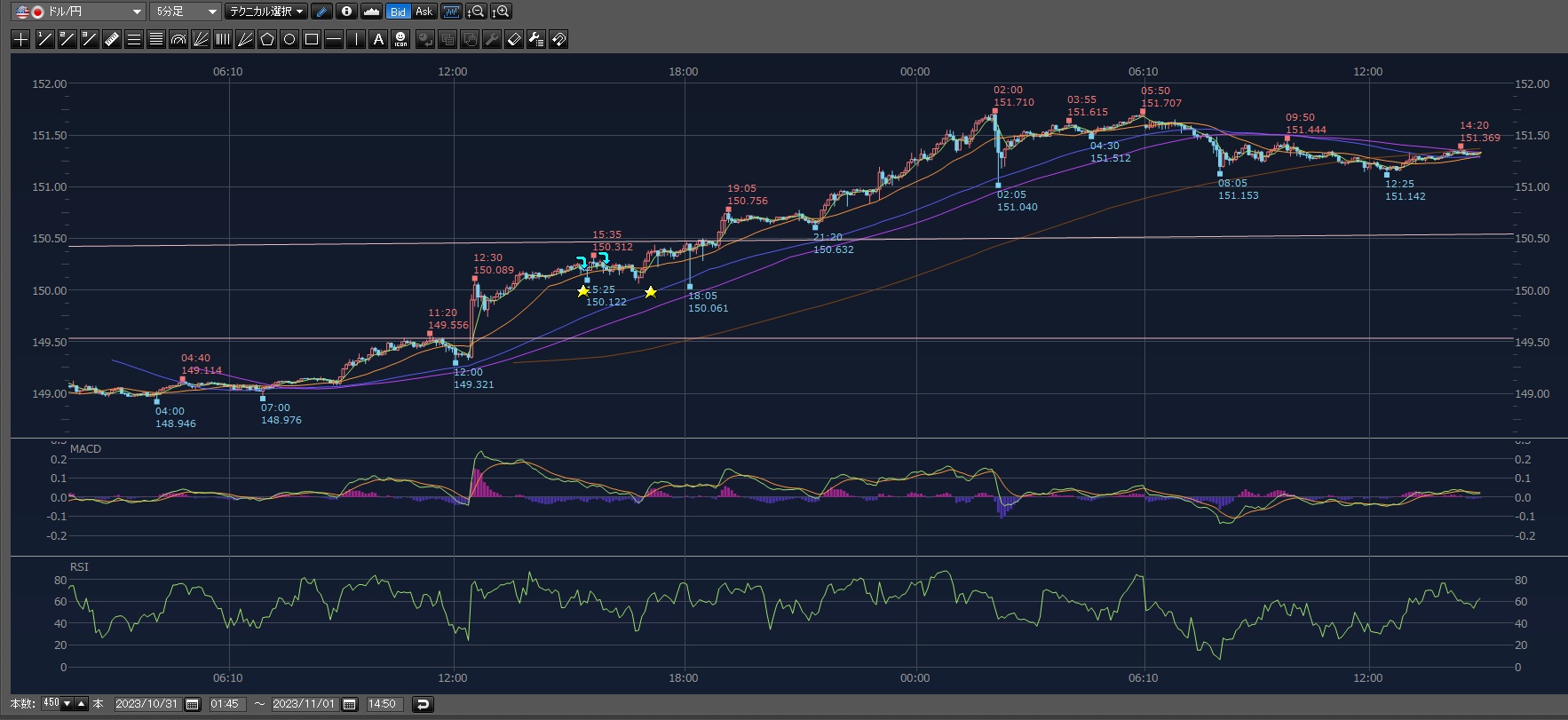 ラストの下げがジワジワと下げてこれはホンマの下げトレンドの始まりになるのかと思って決済したけど・・・