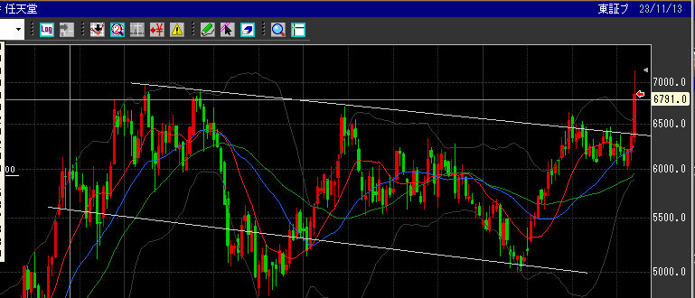 [11/9引け]トレイリングストップでLC位置を節目割れの6995に引き上げ