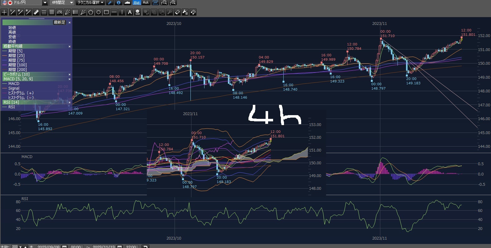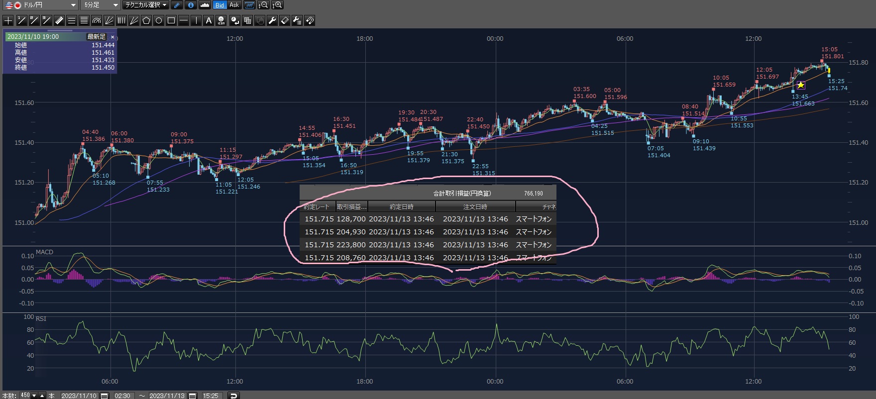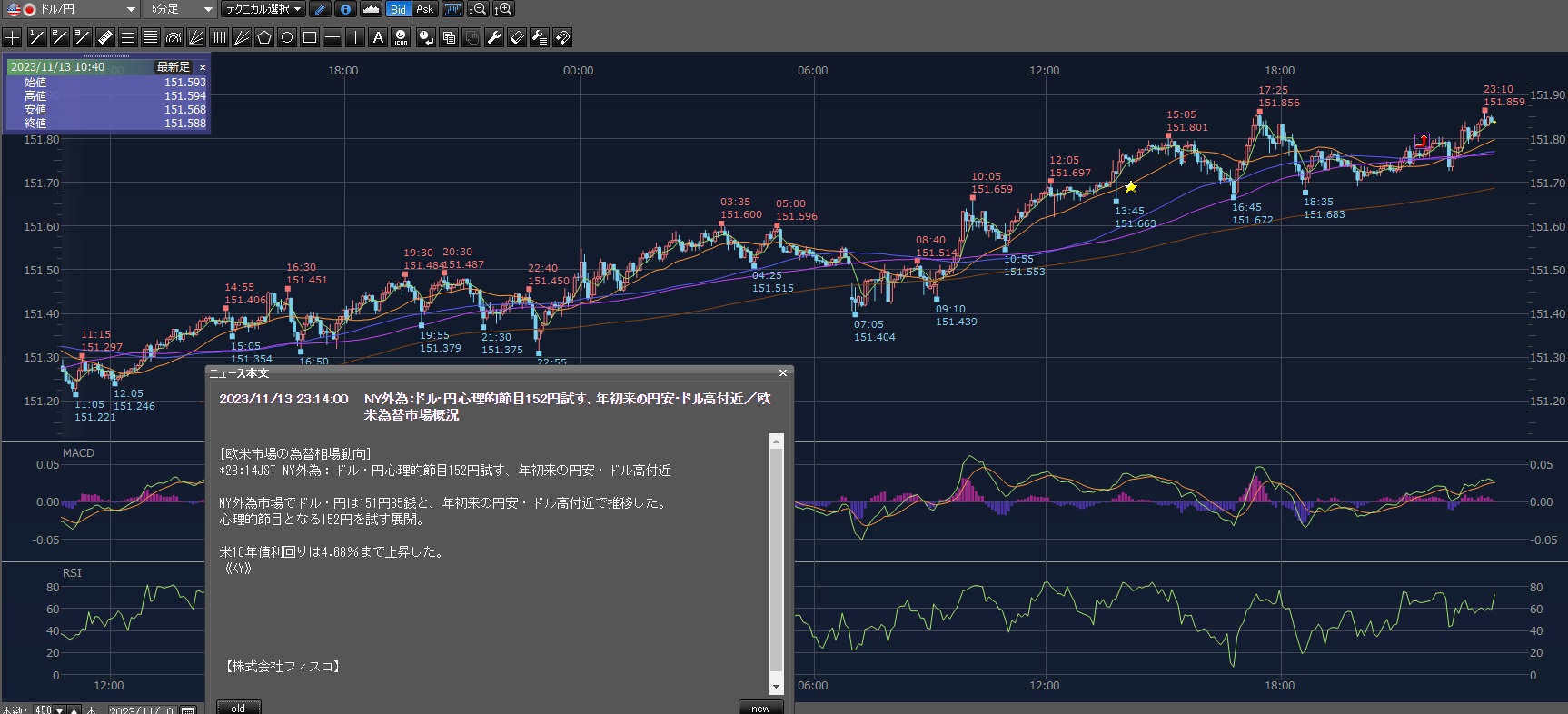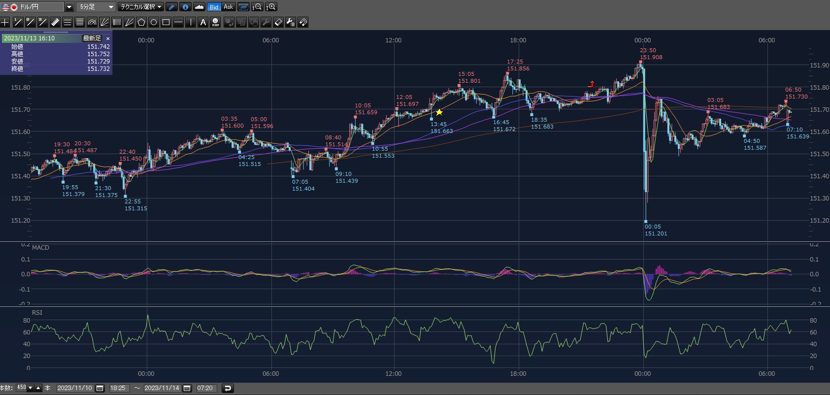 まあその後も上げて151.801円まで上げてる