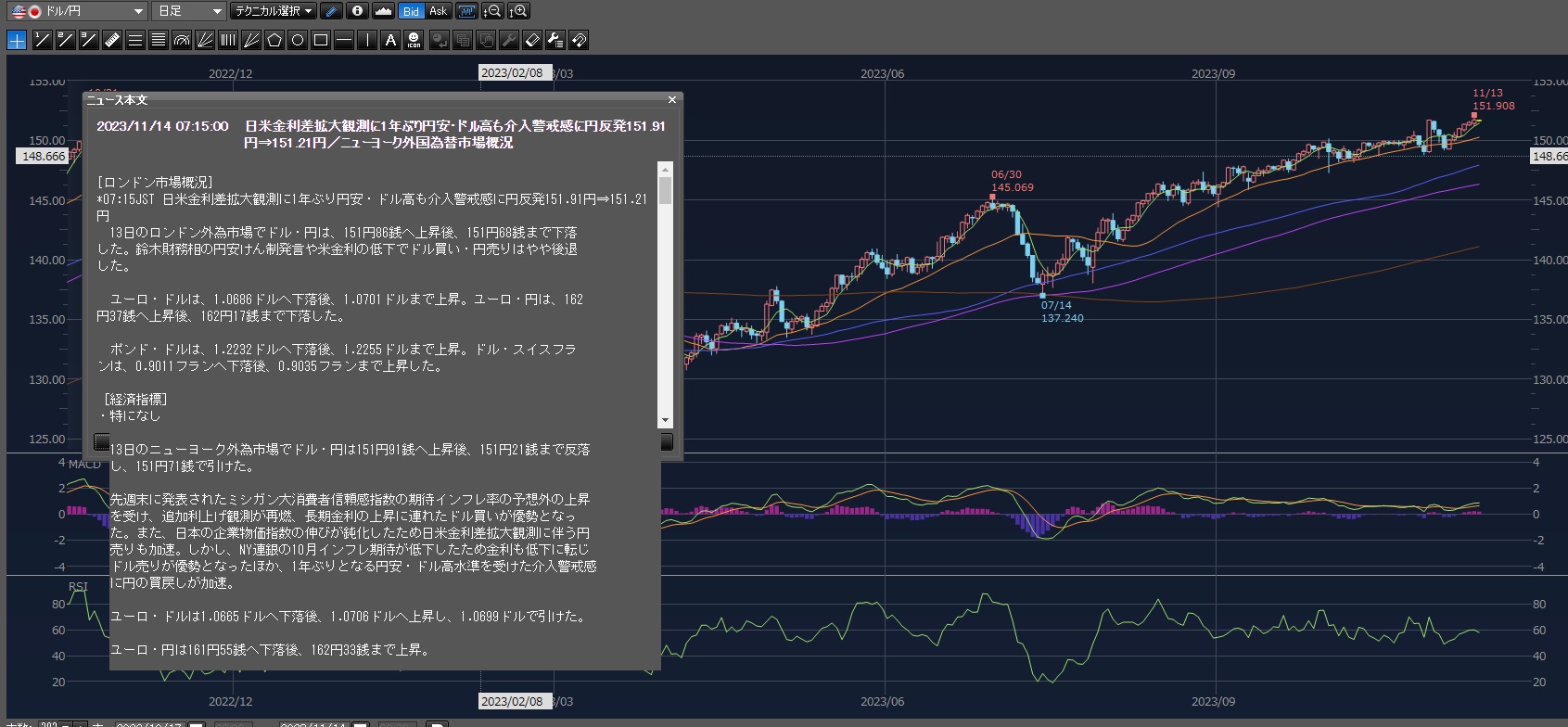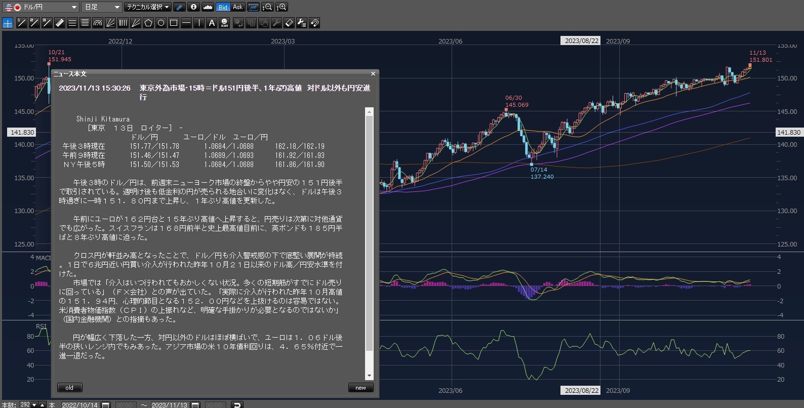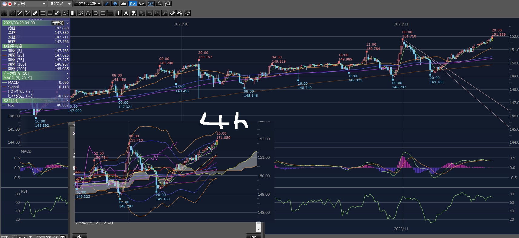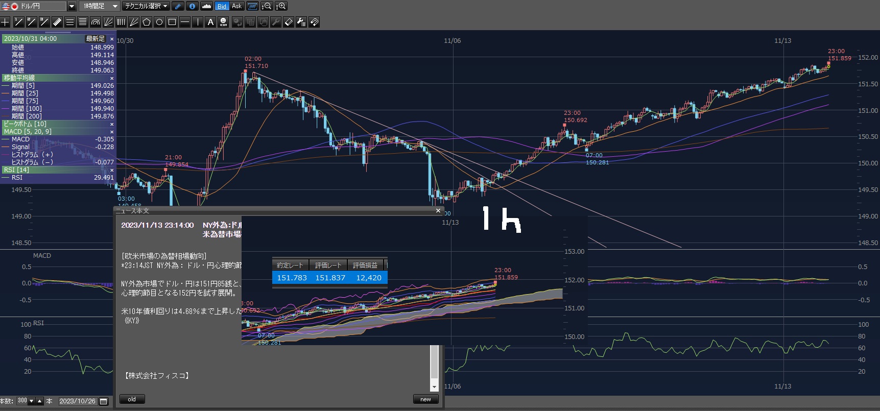 まあその後も上げて151.801円まで上げてる