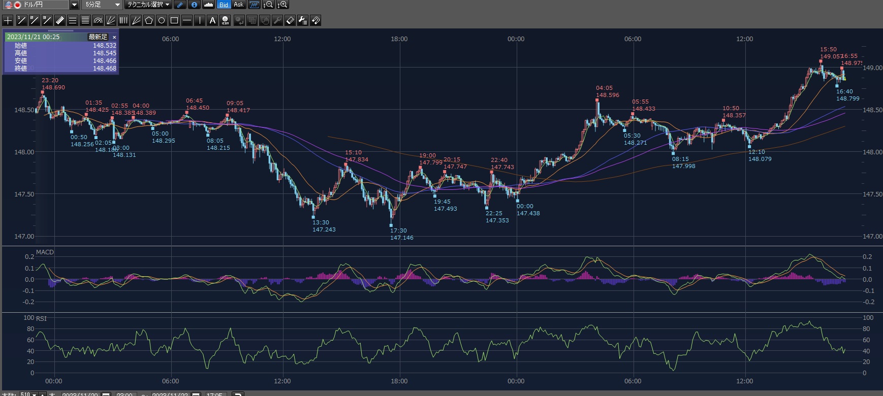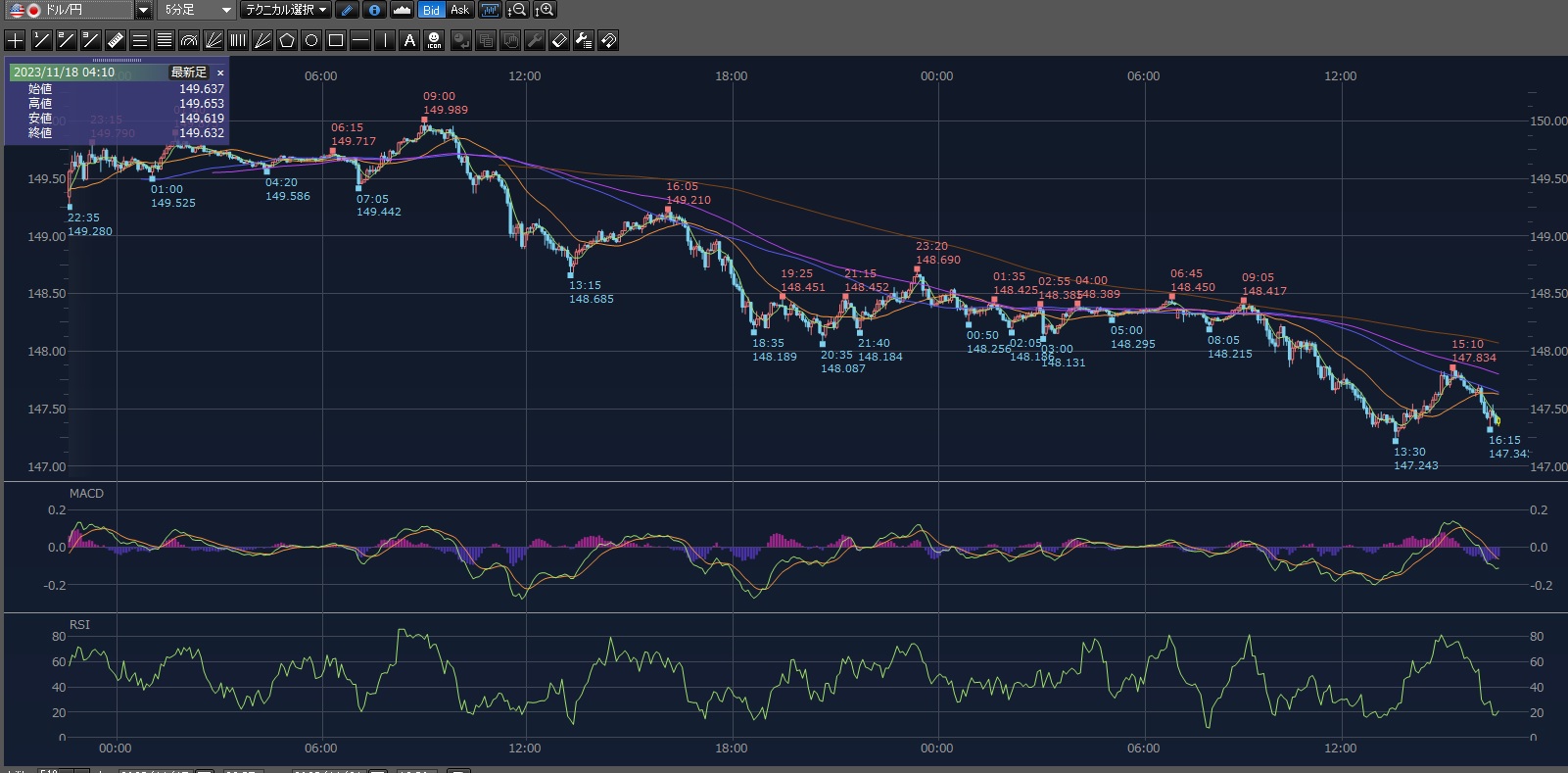 ドル円ようやく昨日から下げ止まり