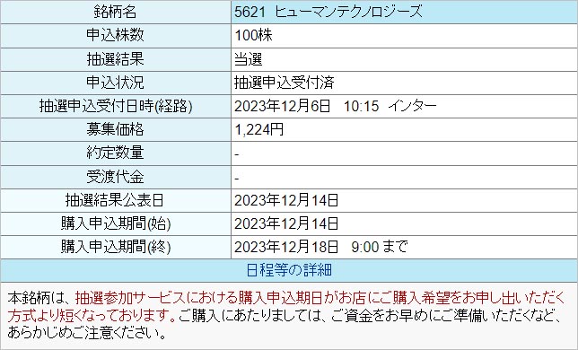 【IPO】ヒューマンテクノロジーズ 当選