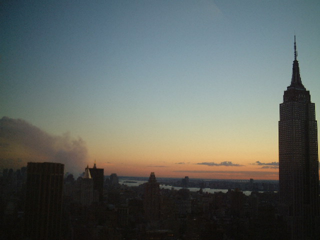 でも片側が崩壊した後、私達がいたビルも避難勧告が出て、逃げることに。(次にエンパイアが狙われているという話がその時にはあって、連続で狙われているらしきこと、ワシントンでペンタゴンも攻撃されたらしきことなどが、ラジオのニュースで伝わっていた)