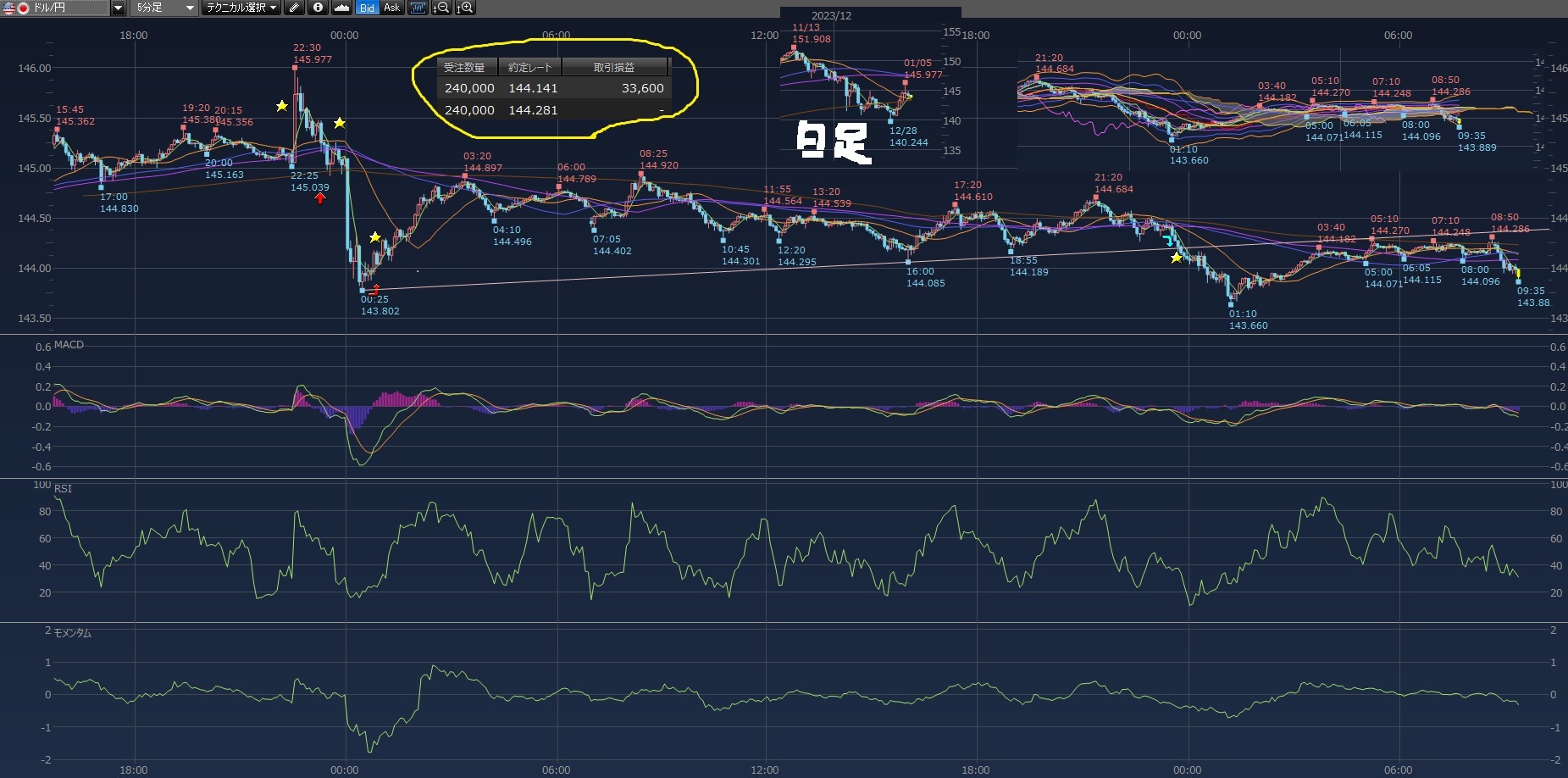 144円割れそうやなとS